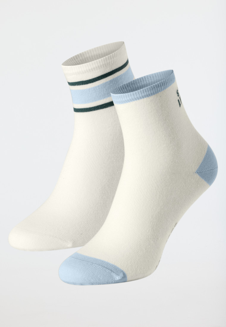 • weiße Damensocken mit Details in Hellblau und Grün