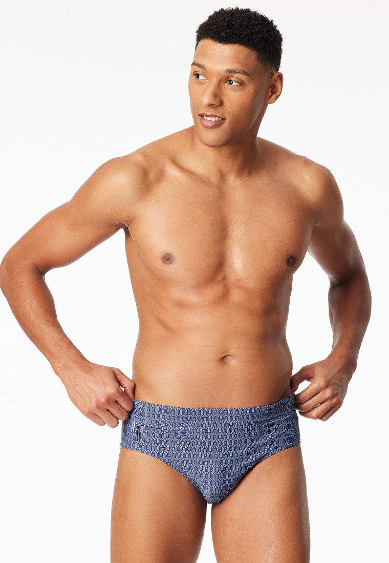 Badehose mit Reißverschlusstasche navy gemustert - Aqua